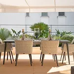A patio and a balcony feature a sofa set, as well as comforts like an iron with ironing board and climate control. A TV set make up the in-room media amenities. A bathroom comprises a bidet, a separate toilet, and a shower. A hair dryer can also be found.